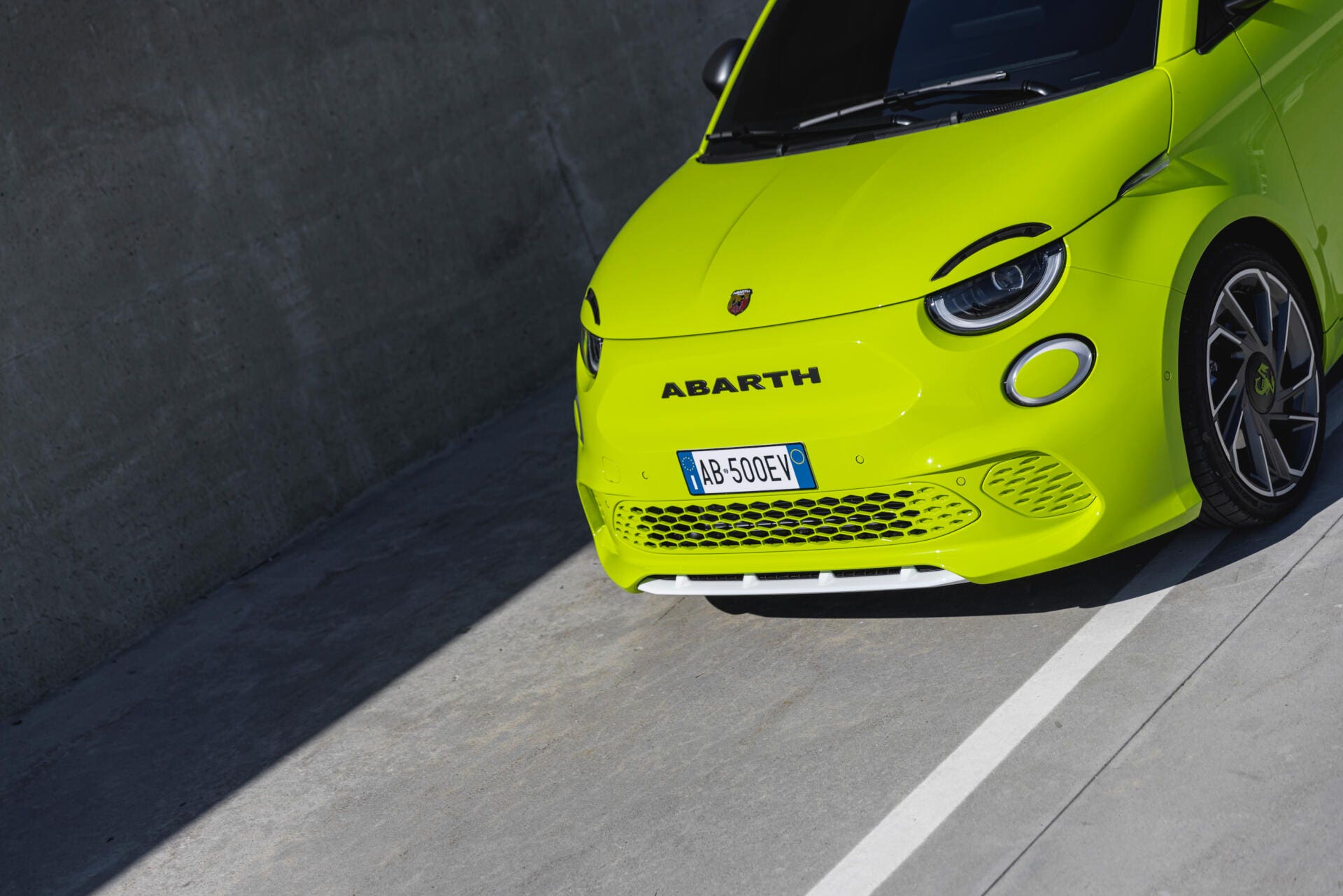 La nuova Abarth 500e avvia una fase nuova per il Costruttore dello Scorpione puntando ora su valori prestazionali derivanti dal nuovo powertrain esclusivamente elettrico, ma guardando comunque al DNA del marchio. Va in questa direzione il nuovo lettering Abarth in Grigio Titanio posizionato sullo scudo anteriore e sul portellone posteriore. Non rinuncia però all’iconico logo dello Scorpione posizionato ora sul cofano anteriore; inoltre c’è un nuovo logo con la firma dello Scorpione elettrificato sulla fiancata, alle spalle delle portiere quasi a voler ricordare agli occupanti che fanno parte del nuovo mondo elettrico del costruttore.