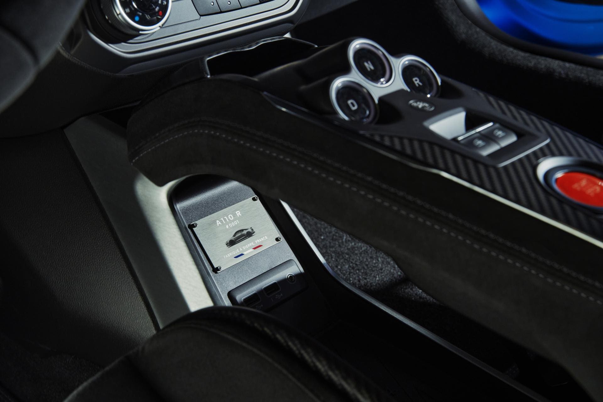 I sedili monoscocca Sabelt Track della Alpine A110 R si ispirano al mondo delle corse automobilistiche. Con il loro design unico in fibra di carbonio, i rivestimenti in microfibra e le cuciture grigie, incarnano il mondo delle auto sportive. Dotati di imbracature da competizione a 6 punti, i sedili garantiscono un supporto ottimale sia per il guidatore che per il passeggero. I sedili sono inoltre dotati di un avviso “Seat Belt Reminder”. Il sedile del conducente è regolabile front-back e up-down, mentre il sedile del passeggero rimane fisso, per un maggiore comfort. La lettera “A” sui poggiatesta riflette l’identità unica del marchio Alpine. Una targhetta unica che riprende la silhouette dell’auto è stata montata sulla console, è stata progettata appositamente per il modello.