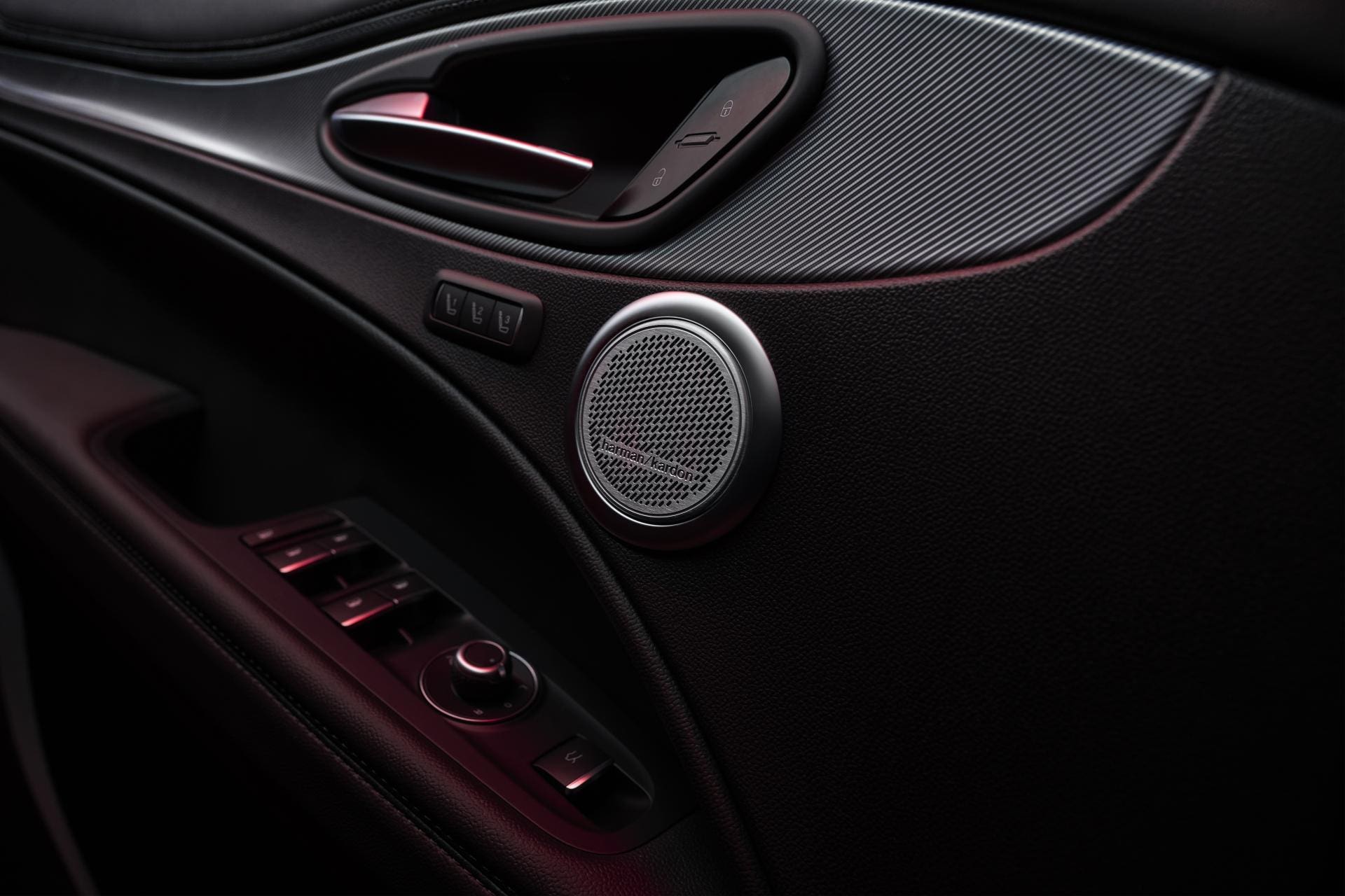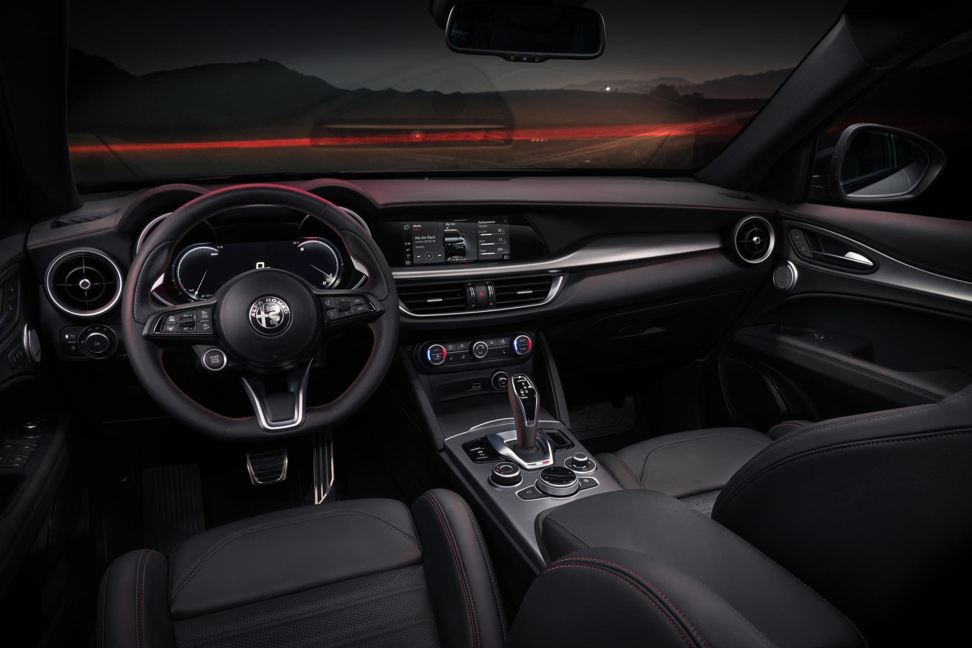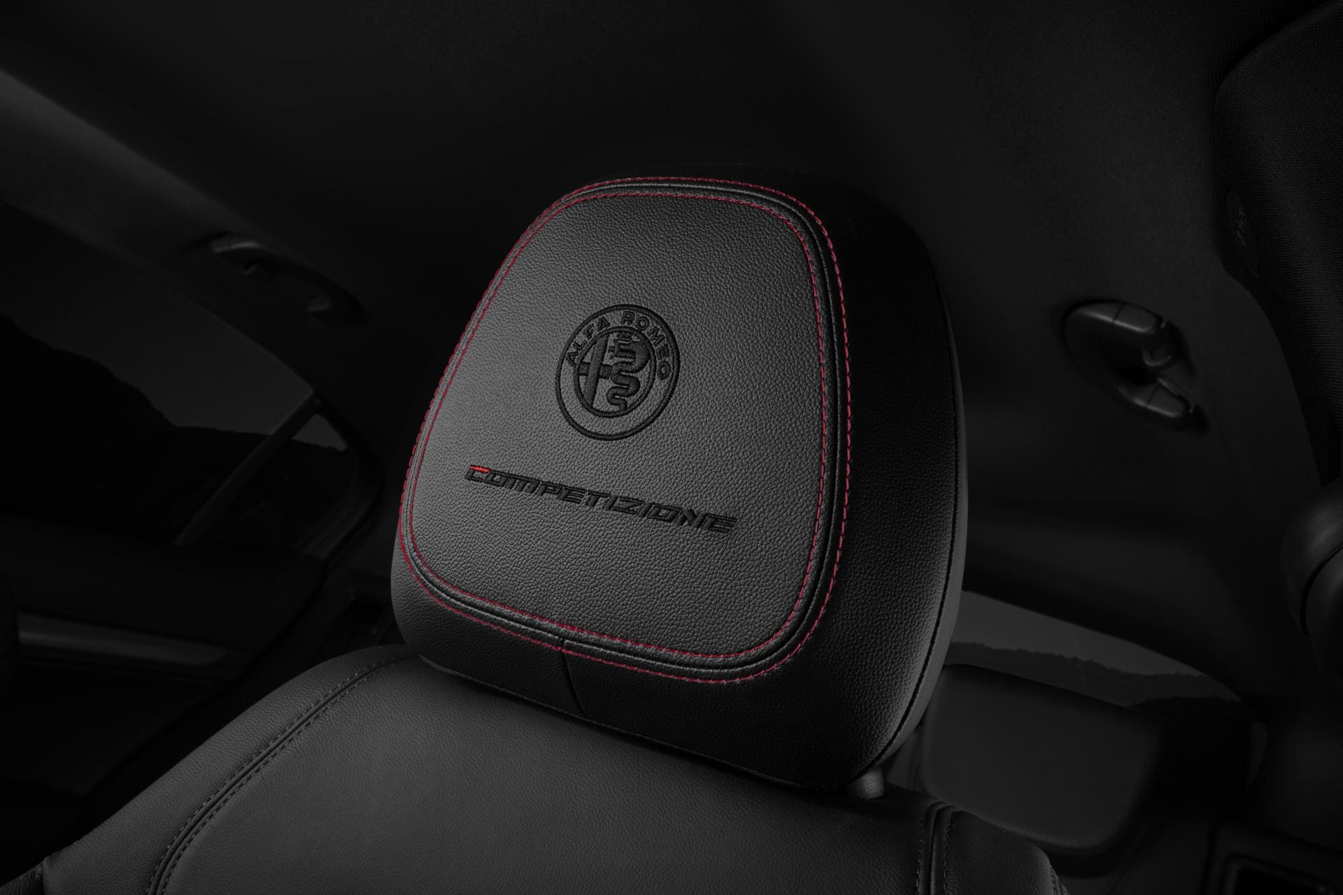 All’interno dell’abitacolo c’è l’eccellente impianto audio Harman Kardon mentre la plancia e i sedili sono rivestiti in pelle nera con cuciture rosse a contrasto. La dotazione viene completata dall’immancabile badge Competizione, disponibile sulle fiancate e sui poggiatesta dei sedili anteriori, oltre che dai vetri privacy. Le varianti Competizione permettono di avere già di serie il sistema Alfa Active Suspension e anche la tecnologia NFT.