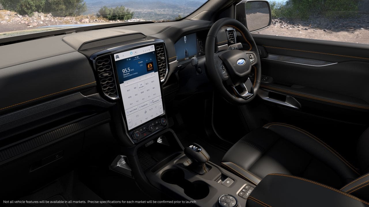 Mutano anche gli interni del Ford Ranger che introducono ora un nuovo quadro strumenti dotato di Virtual Cockpit e sistema multimediale SYNC4 abbinato ad uno schermo disposto in verticale da 10.1 o 12 pollici. Irrinunciabili le connessioni con lo smartphone grazie alla presenza di Apple CarPlay e Android Auto, ma si possono anche monitorare sempre dallo smartphone alcune funzionalità del Ranger mettendolo anche in moto.