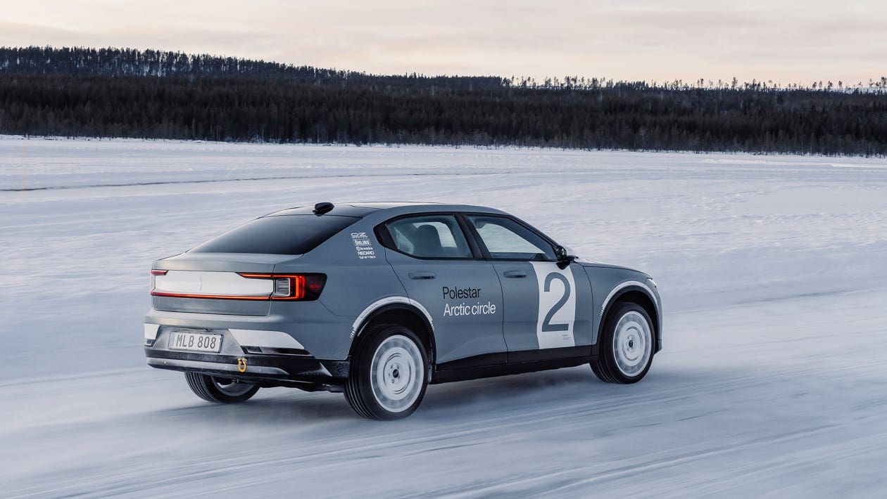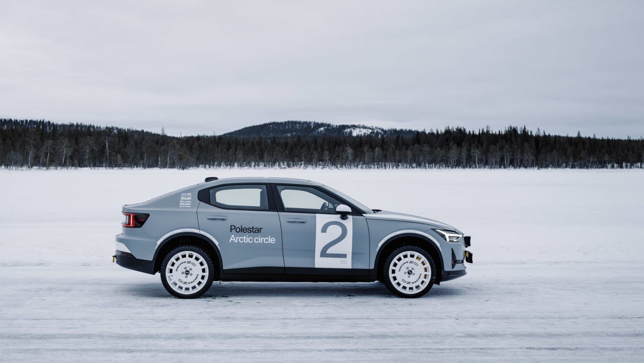 Esternamente, la Polestar 2 Arctic Circle conserva lo stesso design minimalista del modello stradale tradizionale in accordo con alcune aggiunte ispirate ai rally, tra cui una serie di faretti quad-LED disposti nella parte anteriore insieme a una piastra paramotore in fibra di carbonio per proteggere il sottoscocca. C’è anche un’esclusiva livrea grigia e bianca opaca mentre gli pneumatici chiodati sono equipaggiati con cerchi da rally OZ Racing da 19 pollici bianchi.