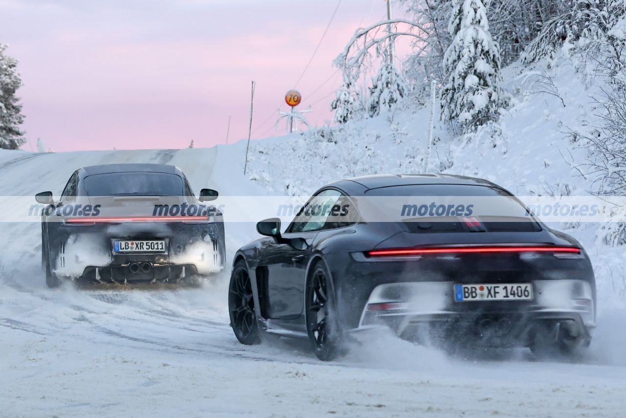 Queste foto spia della Porsche 911 GT3 Touring, che sarà interessata da un piccolo facelift, hanno messo da parte l’habitat più tipico del marchio tedesco per uno più limitato, ma dove ai suoi collaudatori piace anche “danzare” su neve e ghiaccio. Il frontale di questa versione ancora più radicale della 911 non presenta alcun camuffamento, così come era stato anche nel caso della 911 GT3 avvistata quest’estate sulla pista tedesca. L’identità estetica della parte anteriore rimane perciò completamente intatta, anche se vedremo cambiamenti nel corso dell’anno su altre Porsche per applicare i miglioramenti dovuti ai cambiamenti di mezza età.