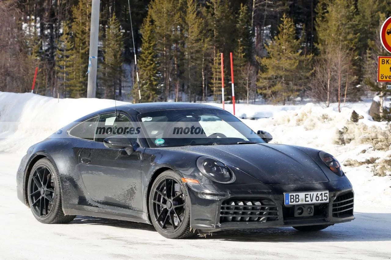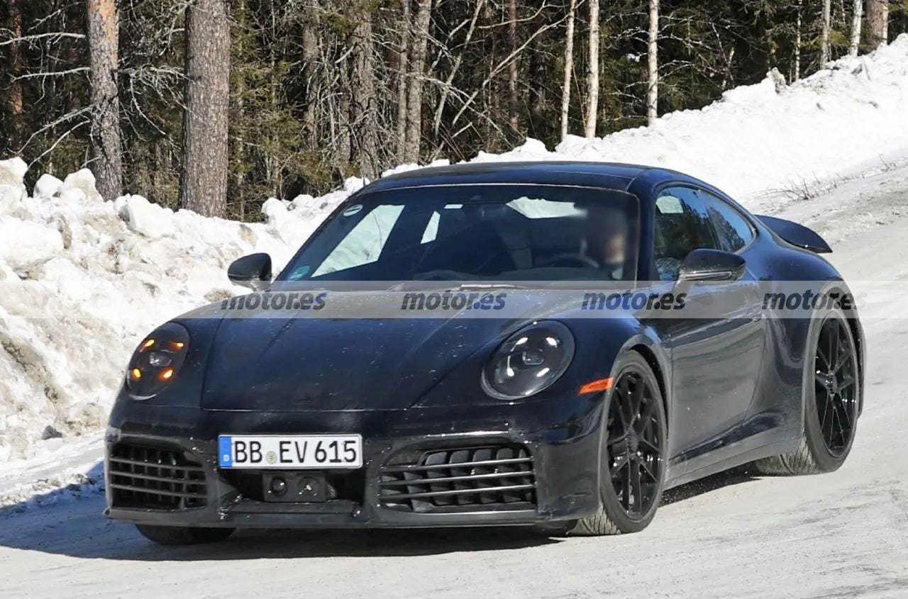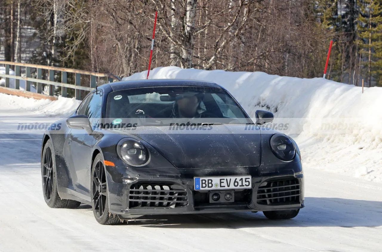 Queste interessanti foto spia mostrano un paio di prototipi di questa variante, visti da tutte le angolazioni e da entrambi i lati. Due unità di prova caratterizzate dal nuovo paraurti dotato di prese d’aria più grandi e feritoie verticali della griglia attiva per migliorare la gestione dell’aerodinamica. Anche i fari, come in altri prototipi della 911, sono parzialmente camuffati ospitando al loro interno la sofisticata tecnologia “HD Matrix LED”.