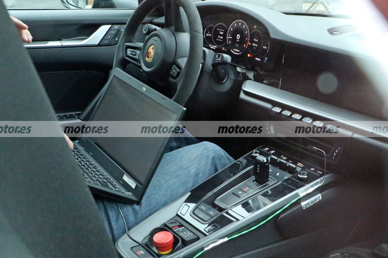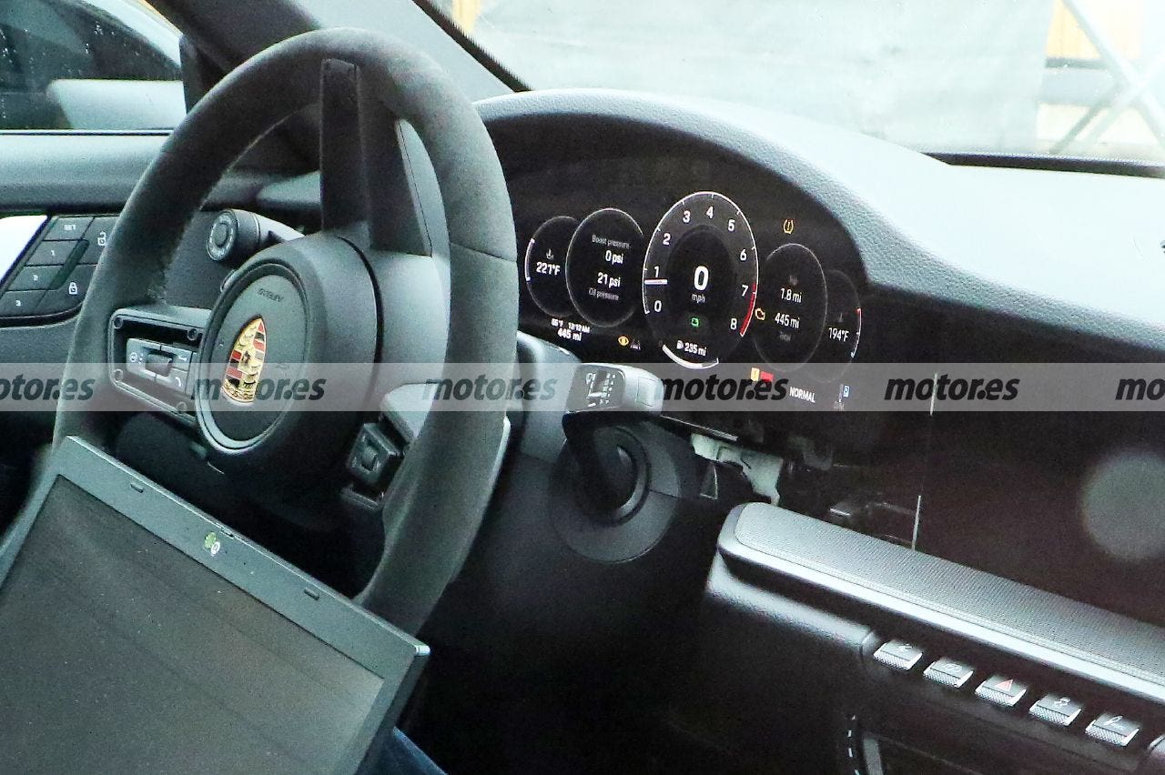 La “992.2”, come è noto internamente il restyling della sportiva bavarese, introduce un nuovo quadro strumenti completamente digitale. È la prima volta che lo si vede così chiaramente, con una riproduzione dei classici quadranti analogici. È l’unica grande novità di una postazione di guida che non mostra più nessuna novità, nonostante il sistema di infotainment avrà il software di controllo di ultima generazione.