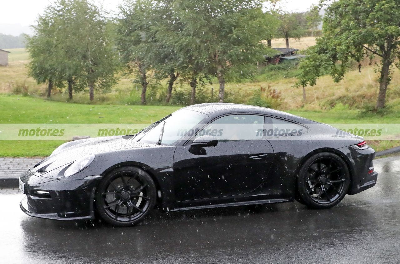 L’esclusiva Porsche 911 ST è ricomparsa quindi durante queste nuove fasi di test dopo essere stata avvistata per la prima volta la scorsa primavera, sullo stesso percorso di prova dove era stata vista anche allora, anche se questa volta sotto una pioggia battente. Il costruttore tedesco ha perciò ripreso questo progetto che vedrà la luce nel corso del 2023, un’edizione speciale e più radicale rispetto alla Porsche 911 Sport Classic presentata qualche mese fa.