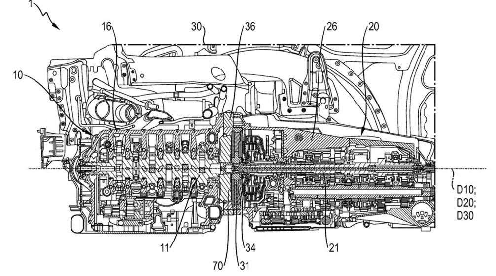 L’idea brevettata da Porsche è sfruttare questa compattezza inserendo il motore elettrico tra le due sezioni di un volano bimassa. Per sostenere la coppia e la potenza aggiuntiva, avrebbe una propria campana frizione e sarebbe imbullonato al motore e/o al cambio. Il brevetto suggerisce l’accoppiamento ideale con un cambio a doppia frizione (DCT), giudicato migliore per l’albero di ingresso più lungo e più in linea con l’uso in una vettura sportiva con motore al posteriore.