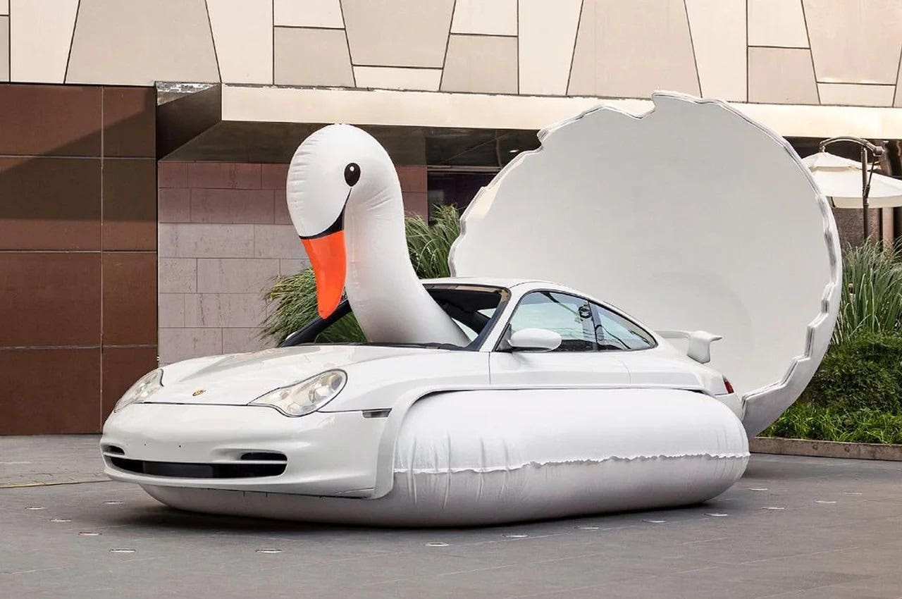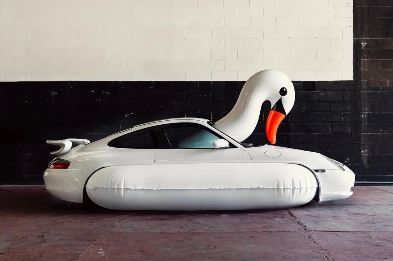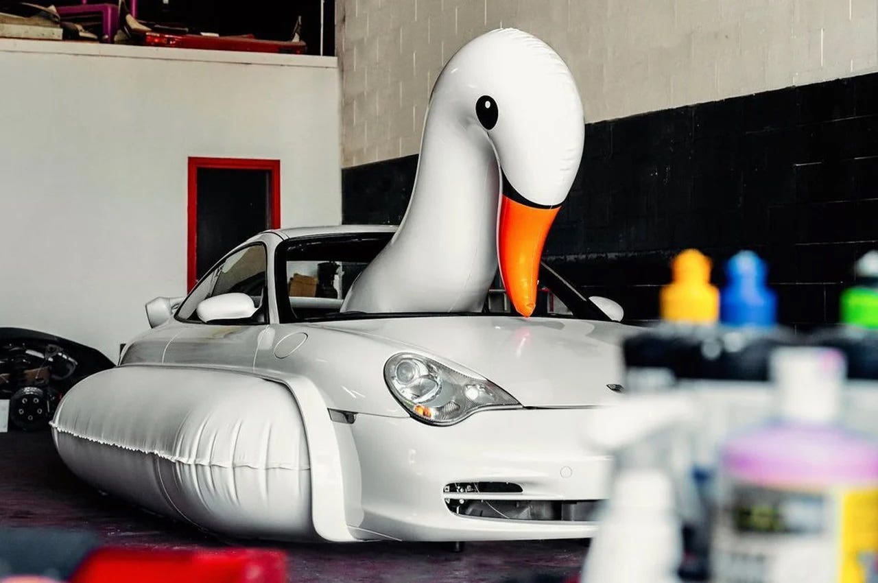 Nella vita possono effettivamente accadere molte cose strane. Una fra queste è sicuramente quella pensata dall’artista Chris Labrooy che ha infatti pensato di mettere assieme una Porsche 911 (996) con qualcosa che probabilmente mai nessuno avrebbe pensato di fondere con un mito come la 911 di casa Porsche. Labrooy ha infatti raggiunto una specie di ibrido dall’unione appunto di una Porsche 911 con un cigno gonfiabile!