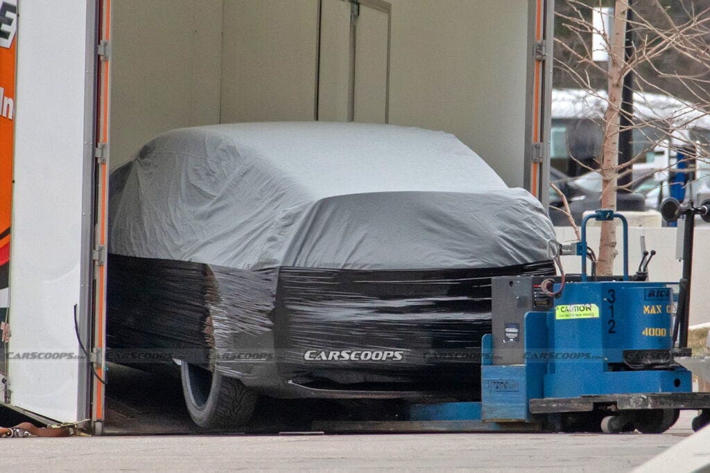 Ford ha grandi progetti per il futuro nel campo delle auto elettriche. Il Costruttore dell’Ovale Blu è stato sorpreso all’interno delle sue strutture di Dearborn da queste foto spia scattate negli Stati Uniti, introducendo un misterioso modello in una bisarca. Un modello di berlina dal design molto sportivo e aerodinamico completamente avvolto in una copertura protettiva e con sopra un’altra speciale copertura realizzata su misura.