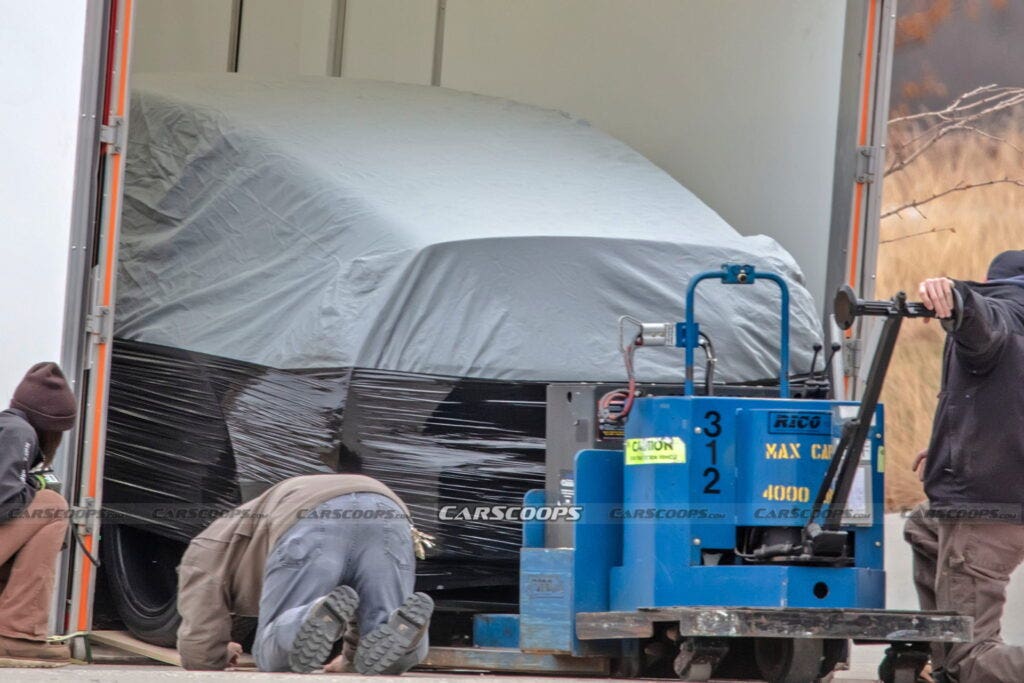 Si tratta di alcune foto spia interessanti e allo stesso tempo misteriose, senza il minimo accenno che riveli se si tratti di un futuro modello Ford poiché si potrebbe trattare ad esempio di una Lincoln. Tuttavia il veicolo non sarebbe funzionante, visto che sono stati gli specialisti dei trasporti ad utilizzare un potente transpallet in grado di sostenere un peso piuttosto consistente per introdurre il veicolo all’interno del rimorchio.