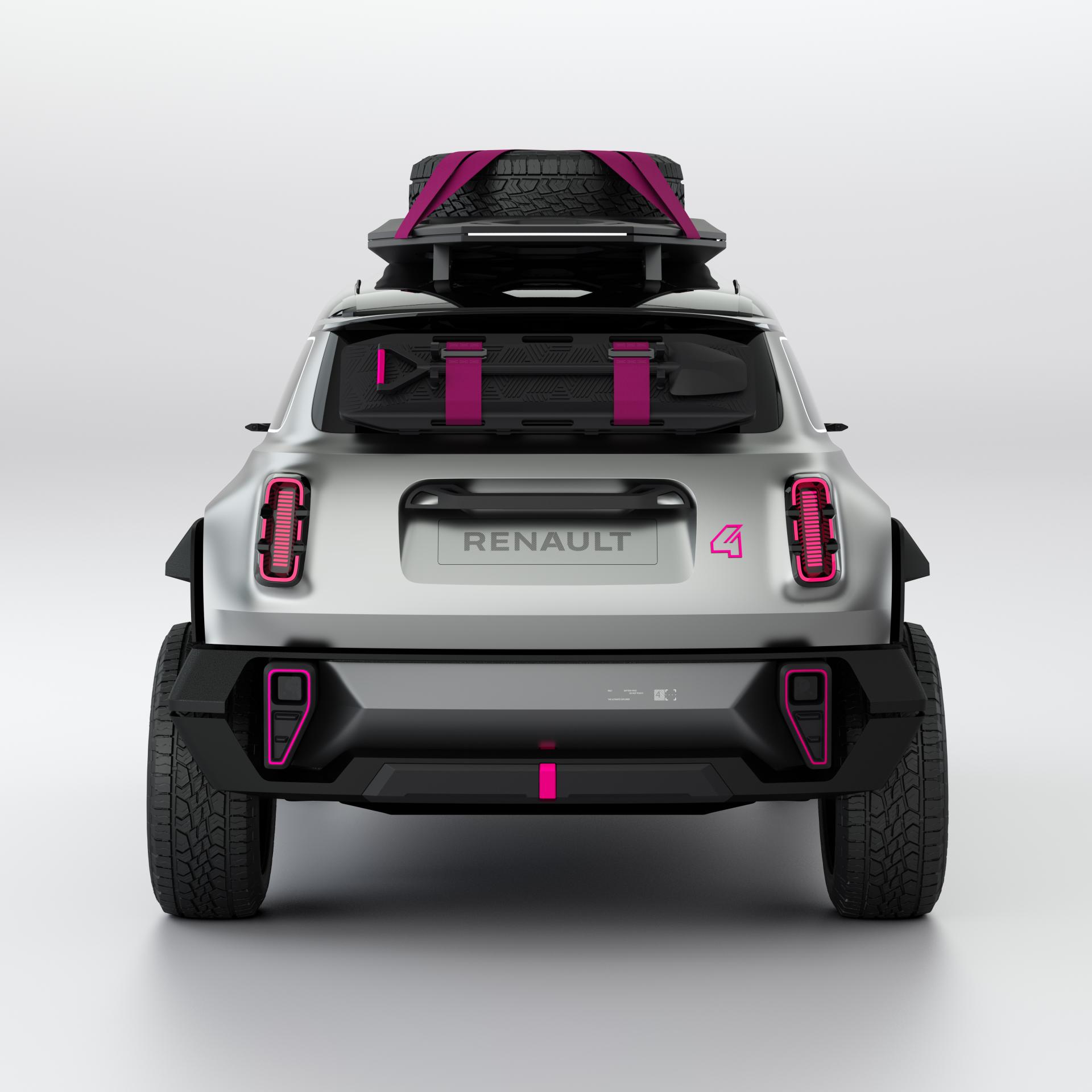 La show car Renault 4EVER Trophy riporta alla mente i ricordi di un tempo passato. Lo fa in accordo con un aspetto muscoloso, ovvero con gli evidenti legami stilistici che la legano con il suo predecessore, la Renault 4L. Le caratteristiche principali della versione originale sono state qui riprese, nello specifico: