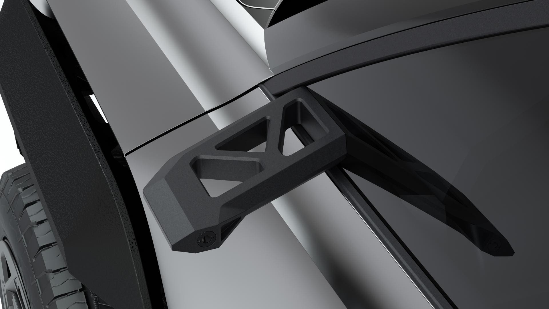Lo spirito da dune buggy conferisce alla Renault 4EVER Trophy un aspetto competitivo. Il cofano scavato ha un grosso scarico per l’aria che migliora notevolmente l’efficacia del radiatore situato al centro dello scudo. Lo sbalzo anteriore è stato notevolmente accorciato per una maggiore capacità di ingombro. Con una ruota di scorta situata sul tetto in fibra di carbonio e una pala e tavole a cialde nella parte superiore del portellone posteriore, la 4EVER Trophy è davvero pronta ad affrontare qualsiasi situazione.