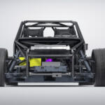 La velocità di picco è di appena 200 km/h. Comunque, qualora aveste l’occasione di guidarla, fareste bene ad andarci cauti con il pedale dell’acceleratore. Altrimenti correreste il rischio di compromettere la funzionalità della batteria, integrata all’interno del telaio a traliccio. Più che essere una scheggia, il veicolo in questione è l’ideale nelle evoluzioni. Lungo 4 metri, largo 2,02 e alto 1,32 con un passo di 2,54, richiama nell’aspetto una city car. L’alettone da competizione smentisce, però, le impressioni iniziali.