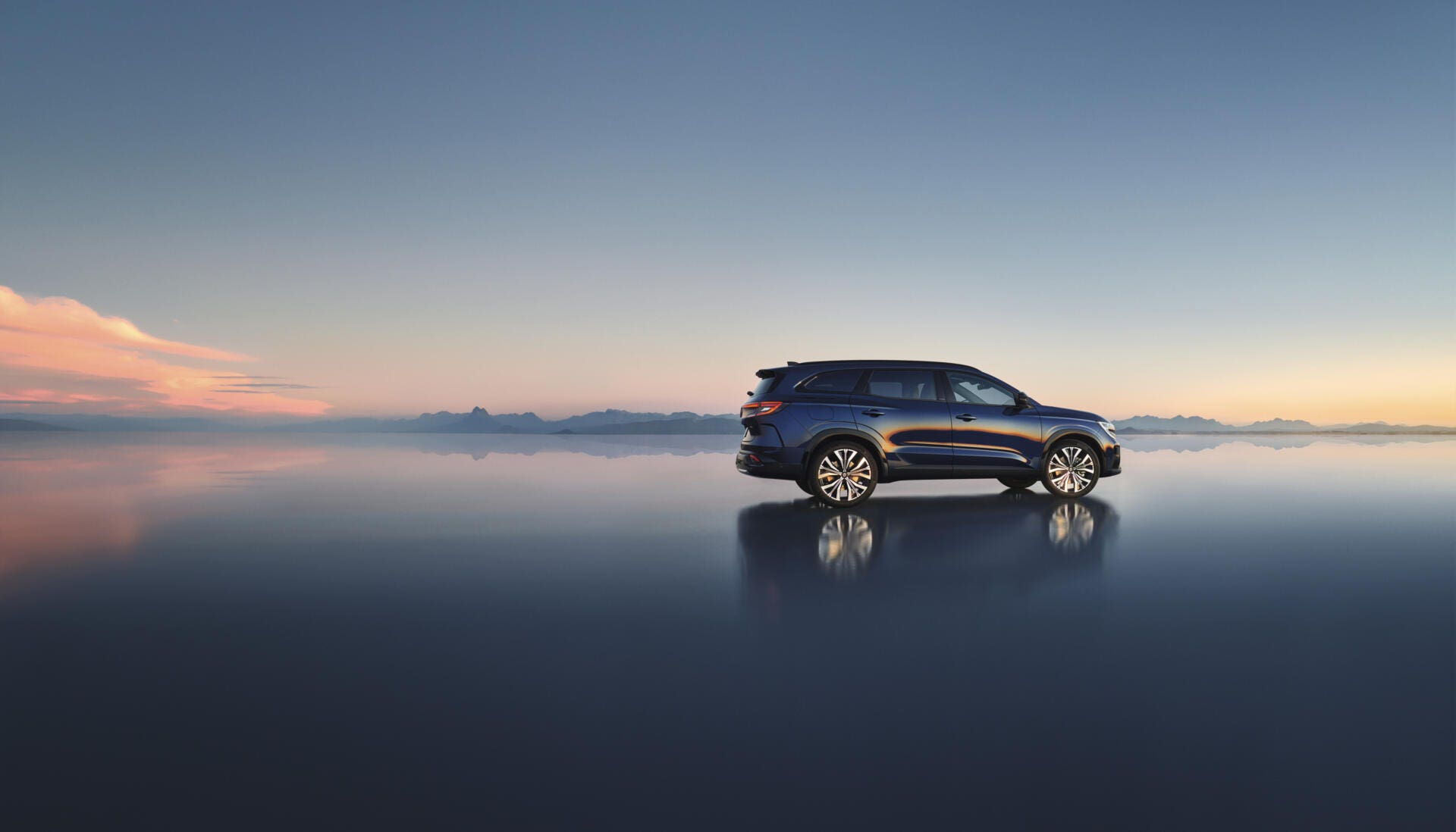 La nuova Espace Esprit Alpine ha un look sportivo, tra cui una griglia a scacchi e cerchi Daytona in alluminio nero diamantati da 20 pollici. I bordi dei finestrini, le barre del tetto e i loghi anteriori e posteriori sono scuri. Il paraurti anteriore, la fascia orizzontale e la lama sono di colore grigio satinato. La carrozzeria Shale Grey satinata è disponibile solo con questo allestimento, come optional.