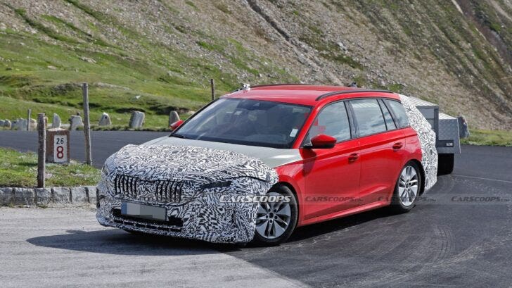 Gli ingegneri di casa Skoda potrebbero aver utilizzato molte camuffatture sul retro per ingannare gli avventori, ma sospettiamo che le modifiche saranno comunque piuttosto limitate. Le luci posteriori a LED del modello attuale sembrano ancora fresche e il Gruppo Volkswagen è solitamente prudente con i paraurti posteriori ridisegnati, quindi ci aspettiamo un aspetto molto familiare con eventuali differenze focalizzate sull’assetto. Entrambi i prototipi avvistati di questa nuova generazione di Skoda Octavia stavano trainando un rimorchio a scopo di test, simile ad altri avvistamenti di vetture a marchio Skoda del recente passato.
