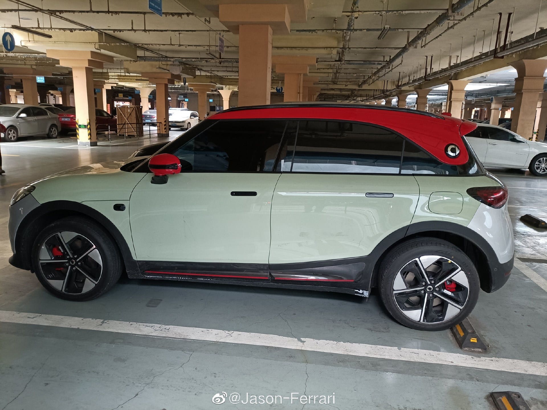Una serie di foto scattate all’interno di un parcheggio in Cina suggeriscono che la nuova Smart #1 potrebbe presto ottenere la già confermata variante incentrata sulle prestazioni, probabilmente firmata da Brabus. Un prototipo non camuffato del SUV elettrico è stato infatti avvistato in un parcheggio sotterraneo da un utente di Weibo che mostrava alcune modifiche visive rispetto al modello standard.