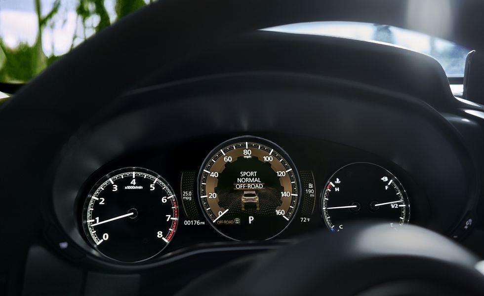 La Mazda CX-50 offrirà un nuovo selettore per le modalità di guida che include modalità off-road and towing (fuoristrada e traino) oltre alla modalità Sport offerta sulla maggior parte delle Mazda attuali. Queste impostazioni regolano funzioni come la risposta dell’acceleratore, il feedback dello sterzo e la messa a punto del sistema di controllo dell’accelerazione G.