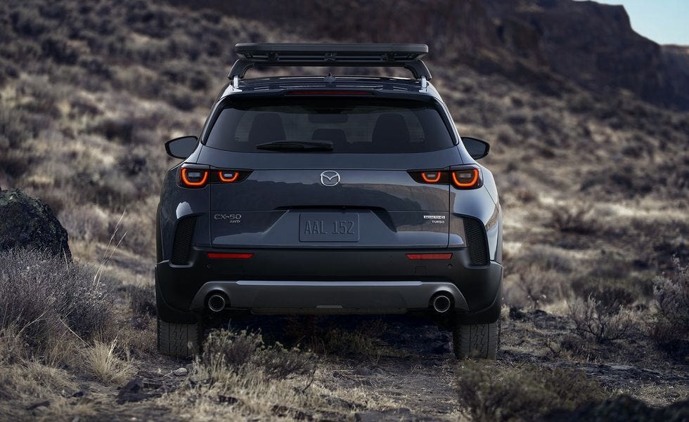 Il costruttore giapponese propone la nuova Mazda CX-50 come un SUV orientato al fuoristrada, dotato di una maggiore altezza da terra rispetto al CX-5 e accessori robusti disponibili. Ma è ancora un crossover unibody e si basa sulla stessa architettura trasversale della Mazda 3 e di CX-30.