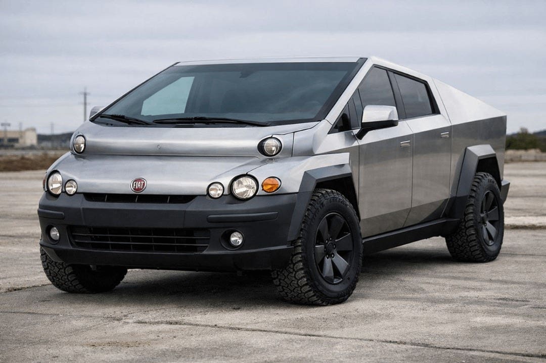 Non sorprende quindi che qualcuno abbia pensato di unire idealmente questi due mondi. In rete è infatti apparso un render decisamente singolare che immagina una Tesla Cybertruck con il frontale della Fiat Multipla. Un’idea tanto bizzarra quanto affascinante, che ha immediatamente attirato l’attenzione degli appassionati. Il risultato è un veicolo che mescola l’aggressività futuristica del pickup americano con le forme inconfondibili della monovolume italiana, dando vita a un ibrido visivamente spiazzante.