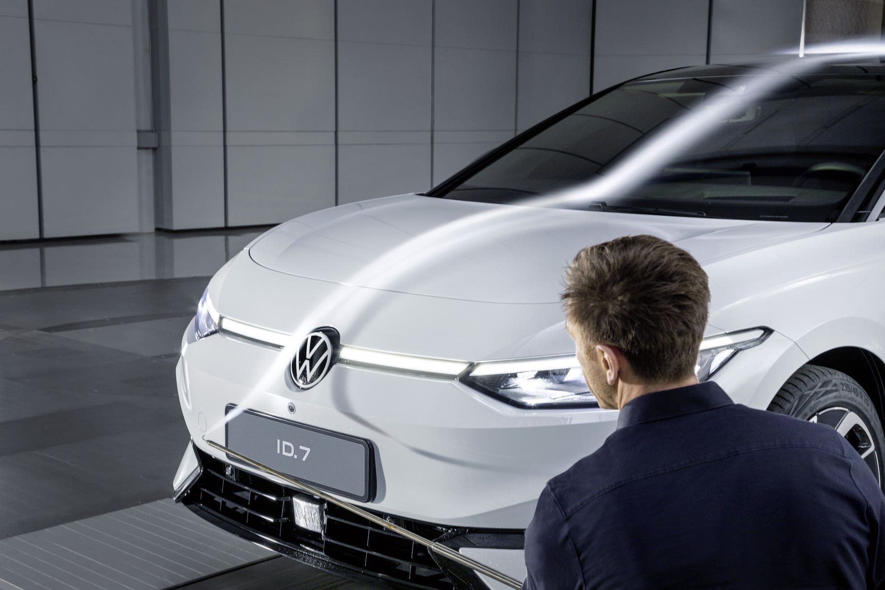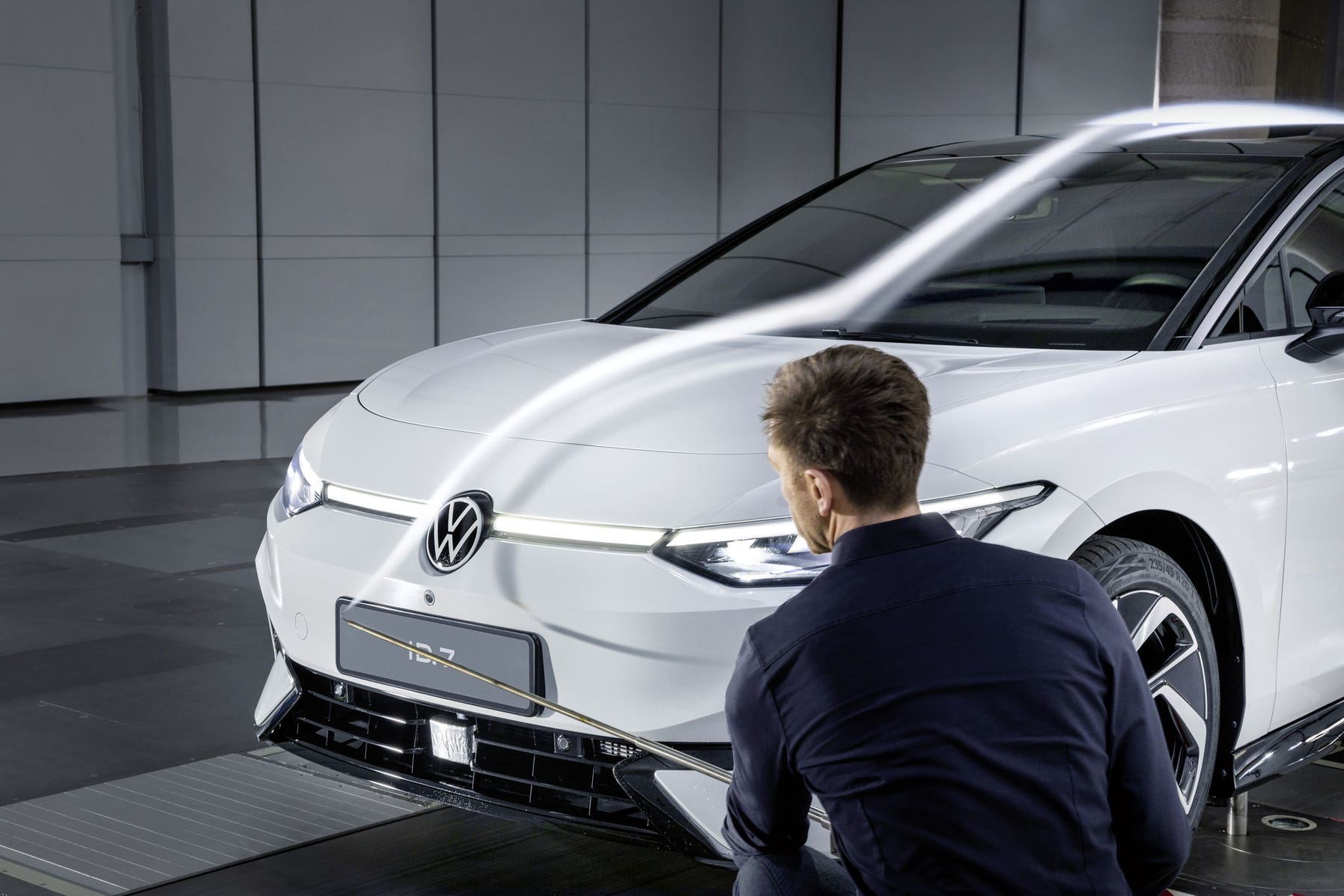 Anche durante le prime fasi dello sviluppo del modello, è stato svolto un intenso lavoro sul design esterno, nonché sul sottoscocca, sulle ruote e su altri dettagli ulteriormente raffinati. Il prerequisito per ottenere risultati ottimali sulla Volkswagen ID.7 è stato quello di mantenere sempre una stretta collaborazione tra ingegneri e designer. Stephan Lansmann, ingegnere di progetto responsabile dell’aerodinamica della ID.7 ha aggiunto che in Volkswagen ci si sforza di trovare soluzioni ideali in un processo iterativo, che include consultazioni regolari tra i dipartimenti di sviluppo e progettazione. “Ci sono molti piccoli passi qui che alla fine ripagano. Numerose simulazioni al computer per il calcolo della gestione dei flussi sono integrate da test in galleria del vento come parte di questo processo”, ha ammesso.