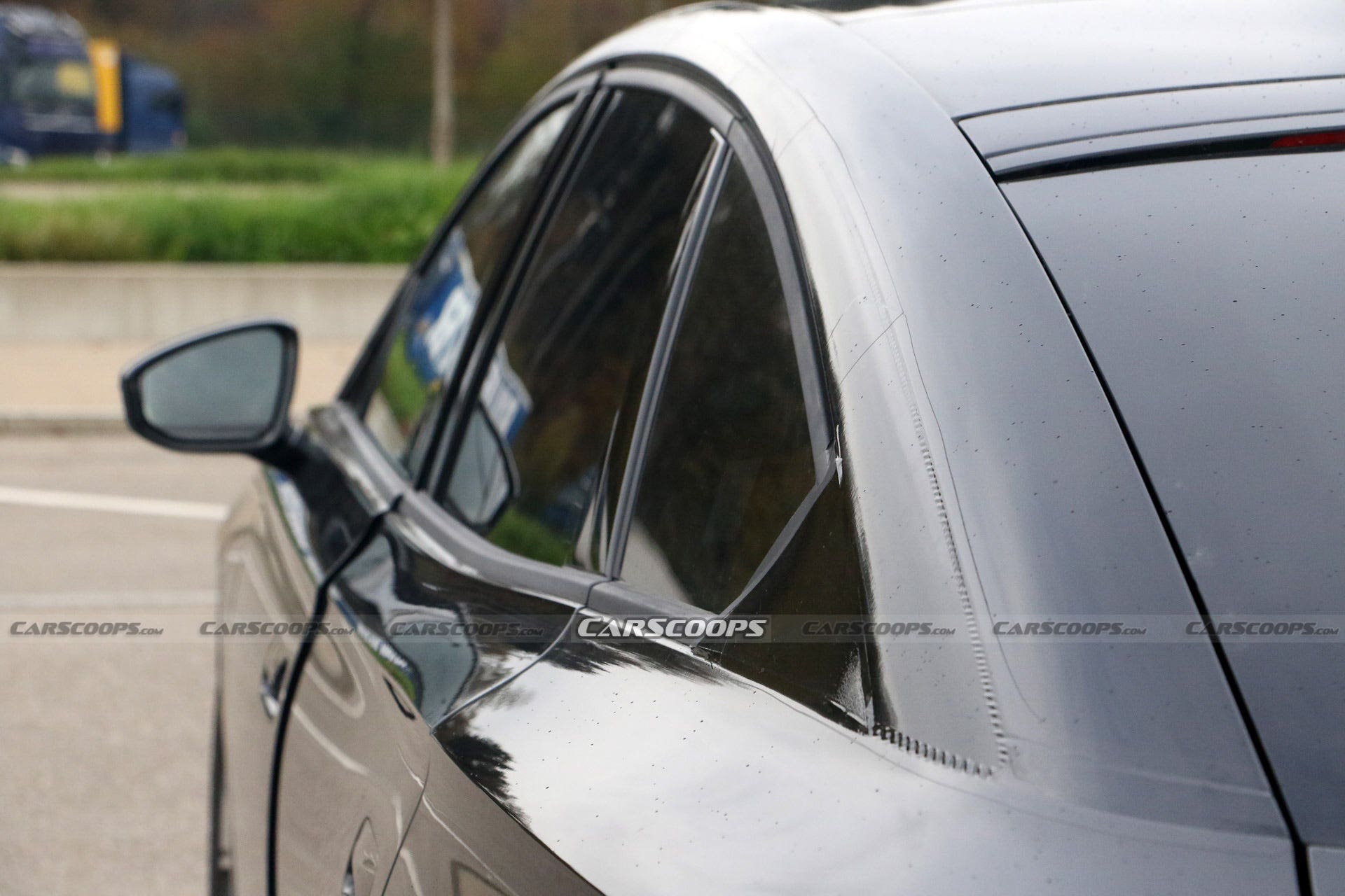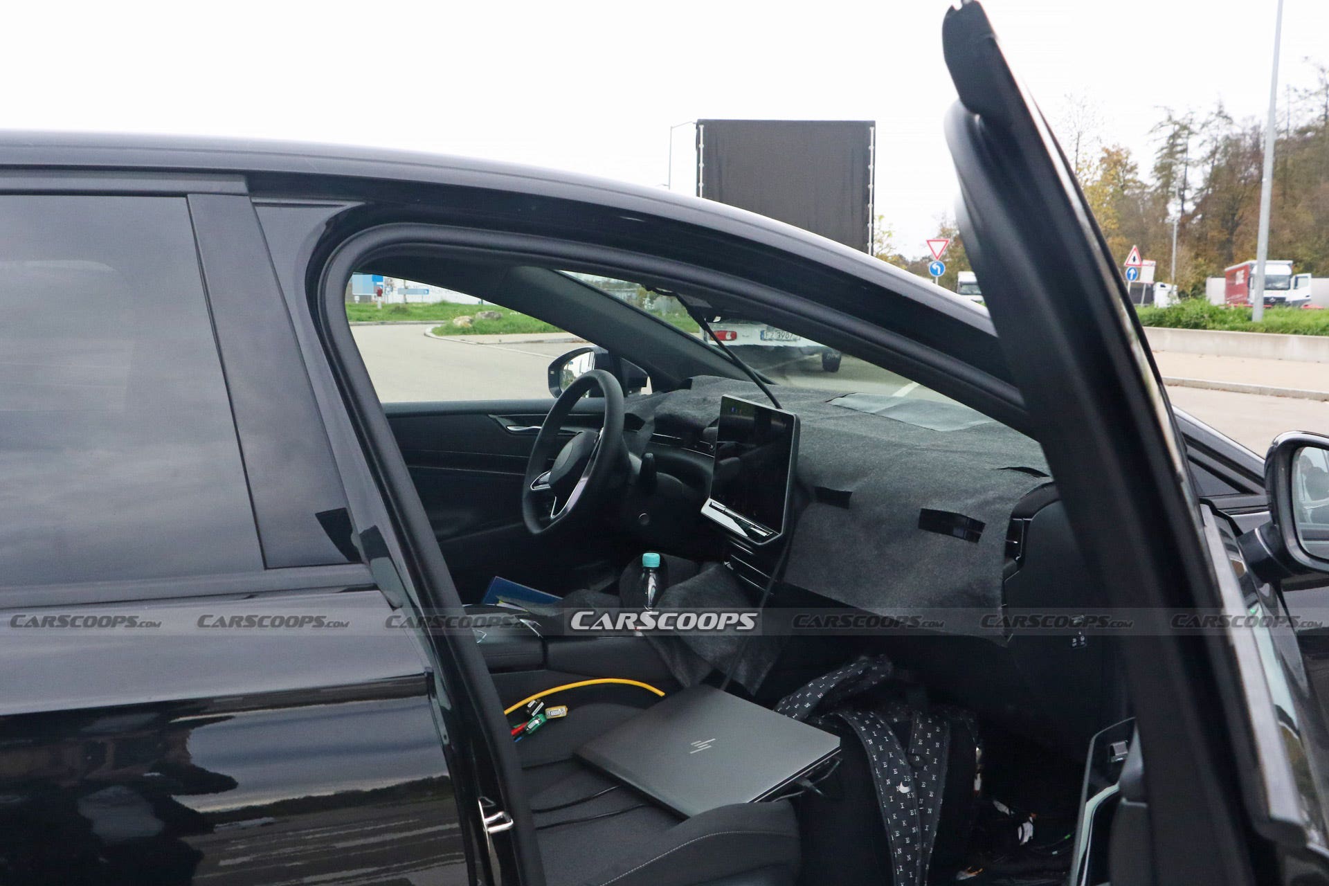 Anche se il resto dell’interno di questo prototipo è coperto da un abbondante camuffamento, possiamo vedere già abbastanza del cruscotto sottostante per vedere che assomiglierà proprio all’abitacolo già visto sulla ID. Aero Concept. Invece del piccolo elemento digitale rettangolare montato appena dietro il volante su auto come la ID.4, il display della strumentazione della Volkswagen ID.7 è integrato nel cruscotto curvo. Non è un caso che l’aspetto minimalista finale avrà più di una somiglianza con l’abitacolo di una Tesla Model 3.