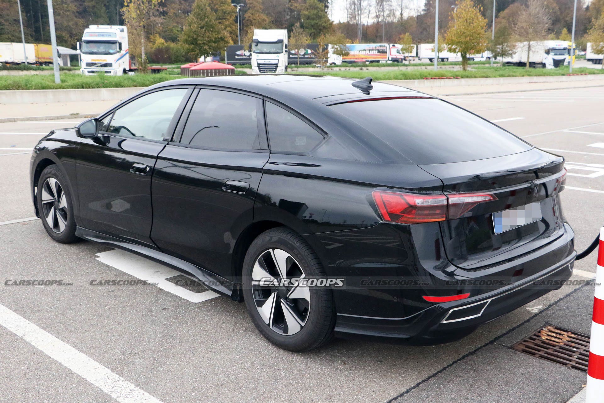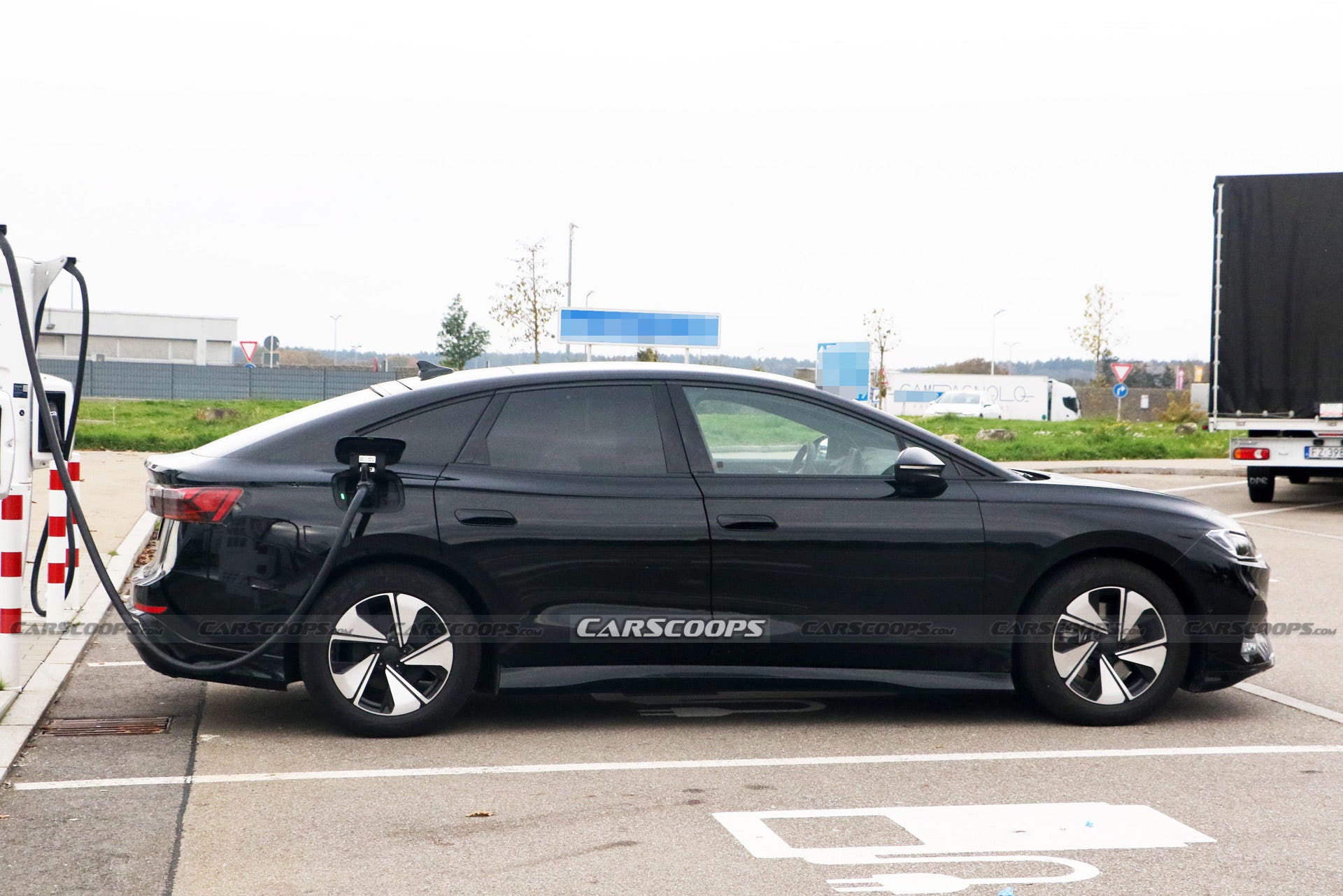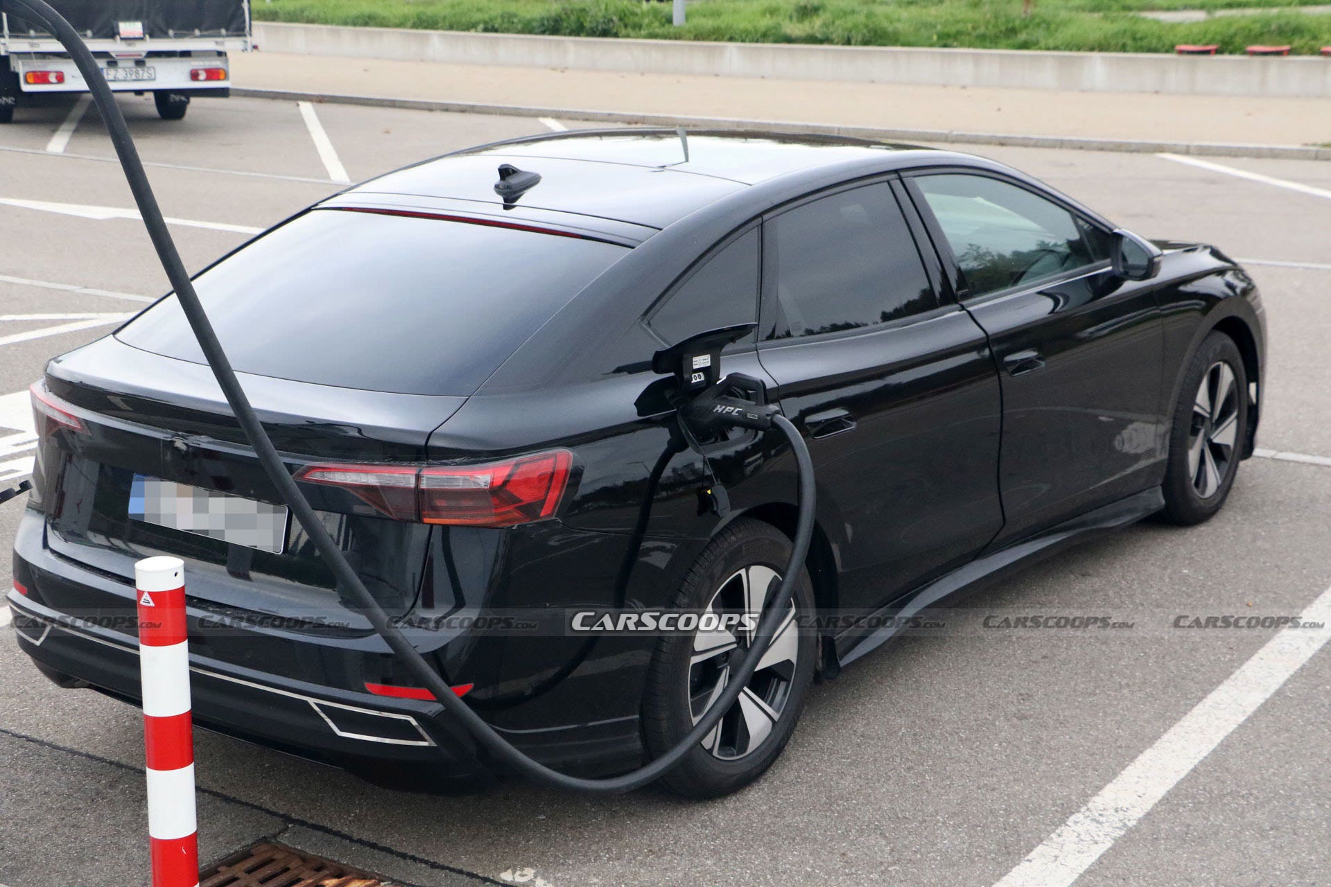 Le ruote montate su questo prototipo di Volkswagen ID.7 sono ancora provvisorie