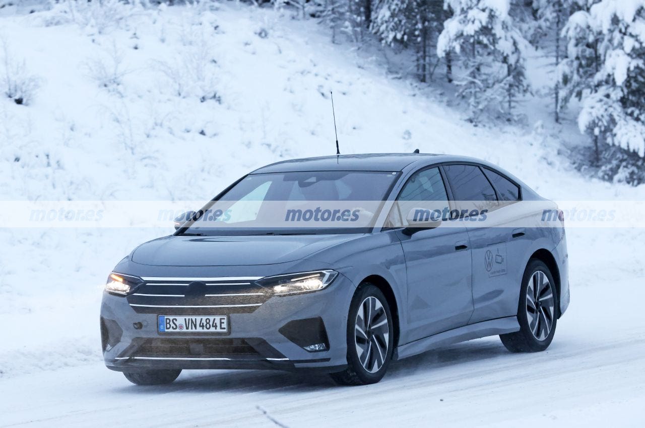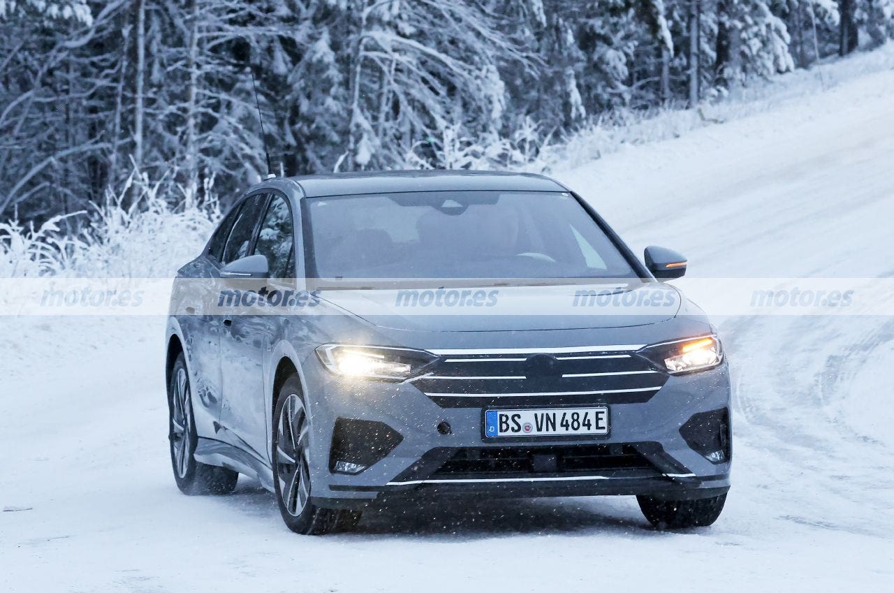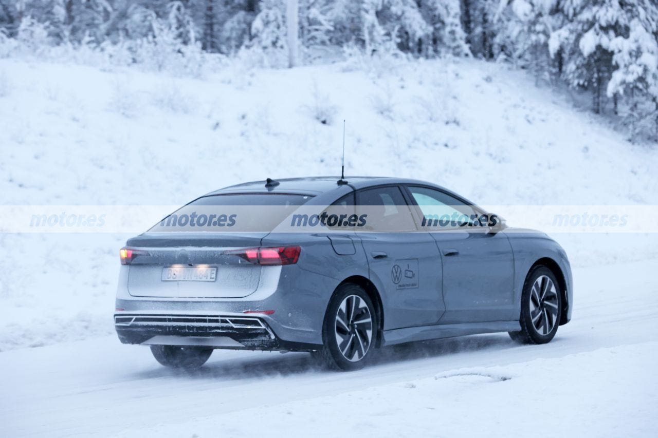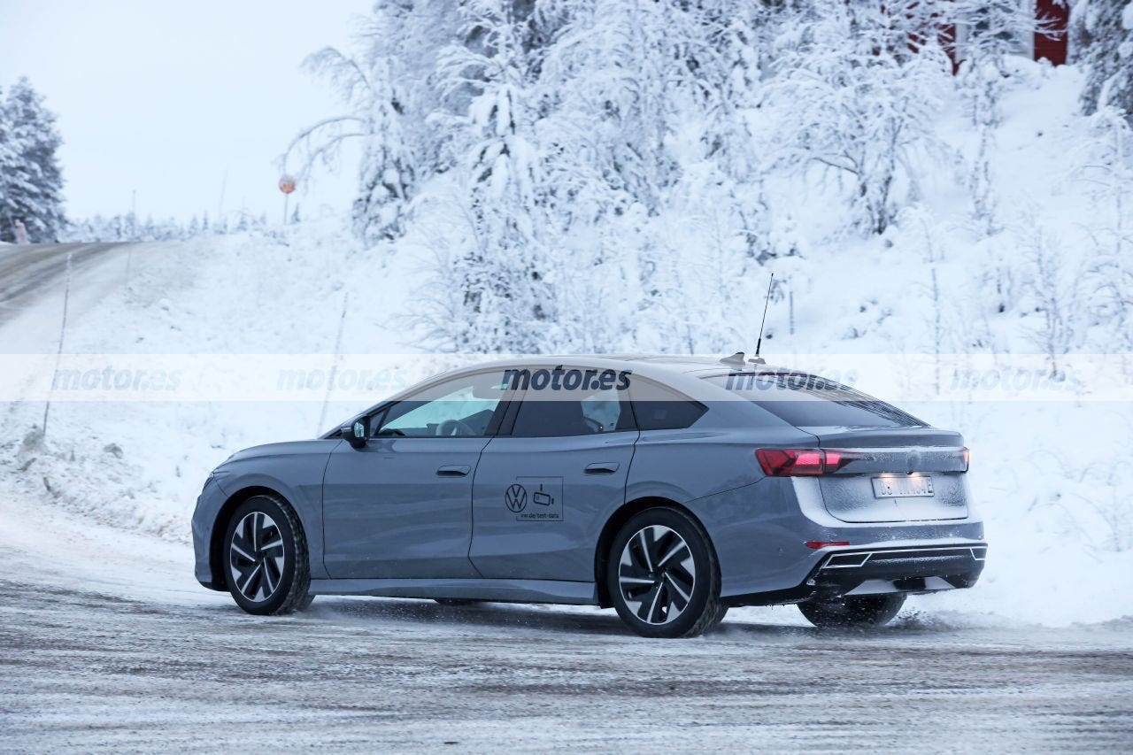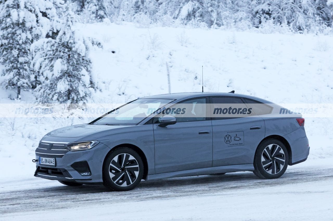 Le foto spia continuano a mostrare un lunotto leggermente mimetizzato alloggiato nel montante posteriore, nonostante la ID.7 vista presso la grande fiera americana dell’elettronica abbia già confermato quello che abbiamo visto da quando è iniziata la sua messa a punto: la sua forma a triangolo. Il fianco mostra proporzioni equilibrate. Lo sbalzo anteriore corto presenta un cofano a conchiglia e la parte posteriore è più lunga per aumentare la capacità del bagagliaio. Anche i fanali dispongono di un aspetto più convenzionale, il che non significa che siano anche uniti.